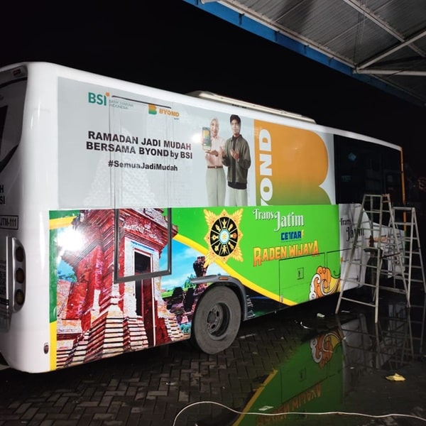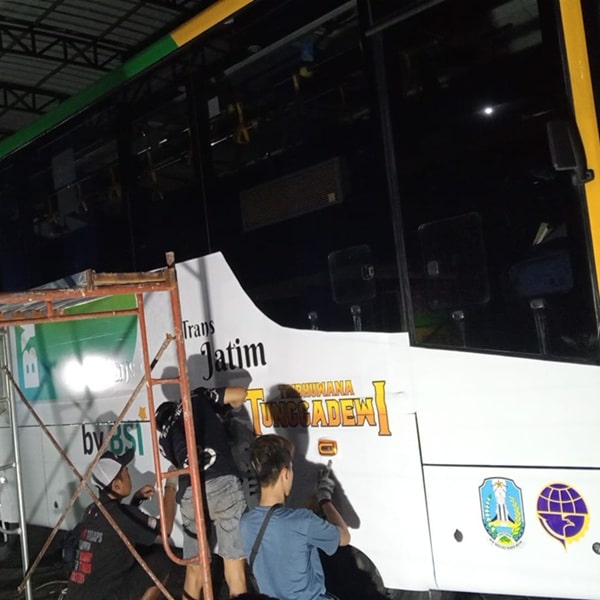 Kami juga berpengalaman mengerjakan pemasangan cutting sticker untuk kendaraan besar seperti bus, truk engkel, elf/hiace, maupun jenis kendaraan lainnya.